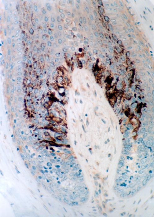- Analysis of the transfer of melanocytes’ specks of melanin to the bulbous cells of the hair bulb